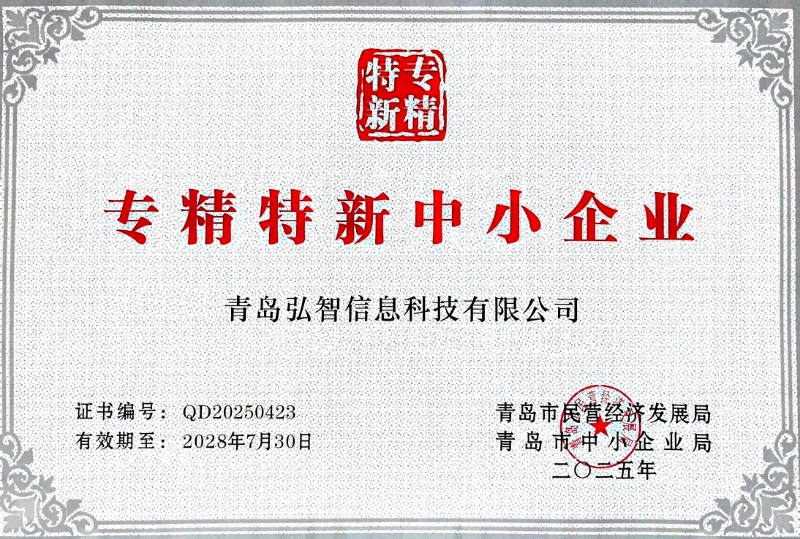 青島弘智信息科技有限公司再度榮膺"專精特新中小企業(yè)"稱號——以創(chuàng)新驅動發(fā)展,以專業(yè)鑄就卓越